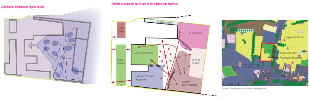 + Création de nouvelles circulations par le tracé d’allées fonctionnelles en suivant les trajets pris par les élèves et des formes plus naturelles.