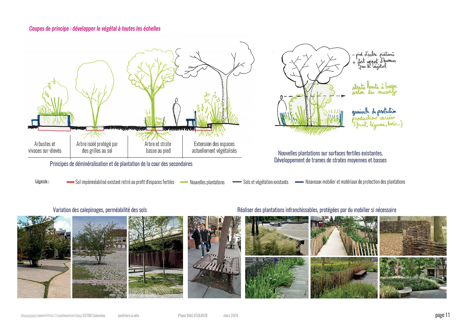 + Ajout d’assises. Des bancs peuvent être associés dans les bordures des bacs de plantation par exemple.
