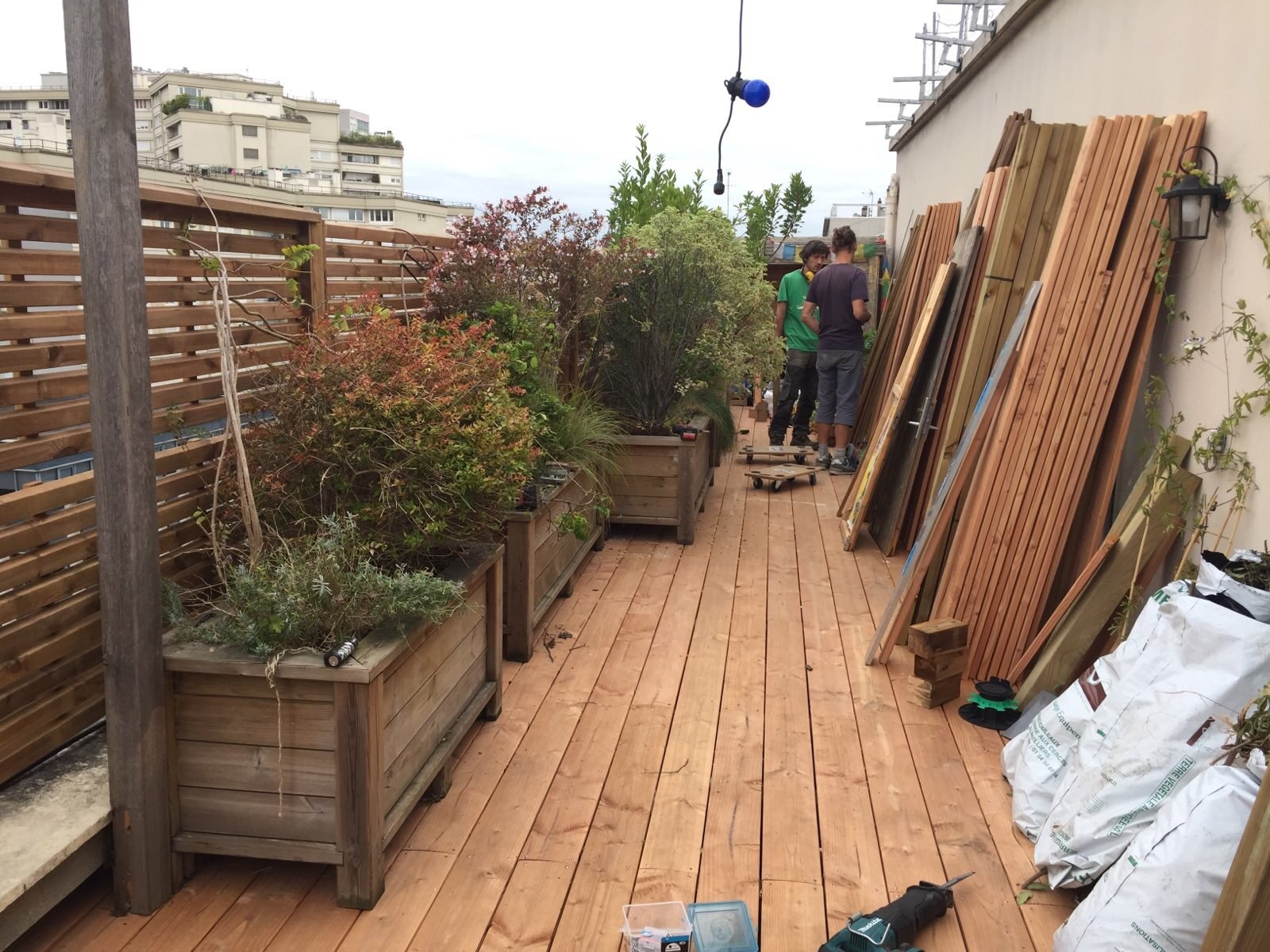Une terrasse réorganisée, réaménagée, revégétalisée et rendue plus vivante et pleine de soleil avant les vacances.