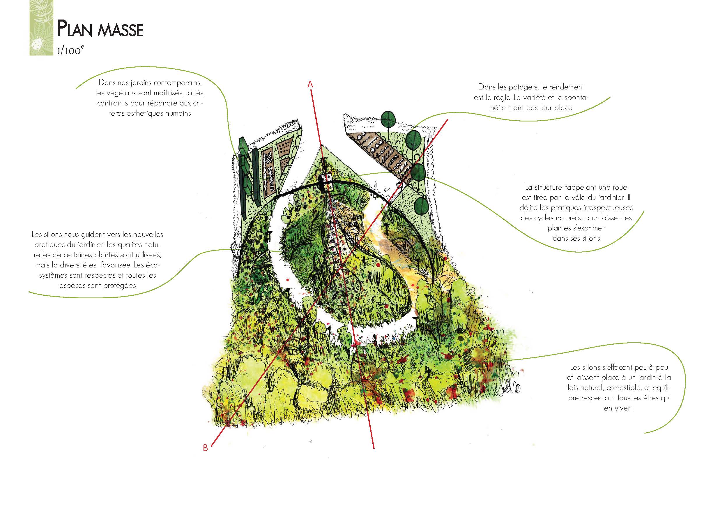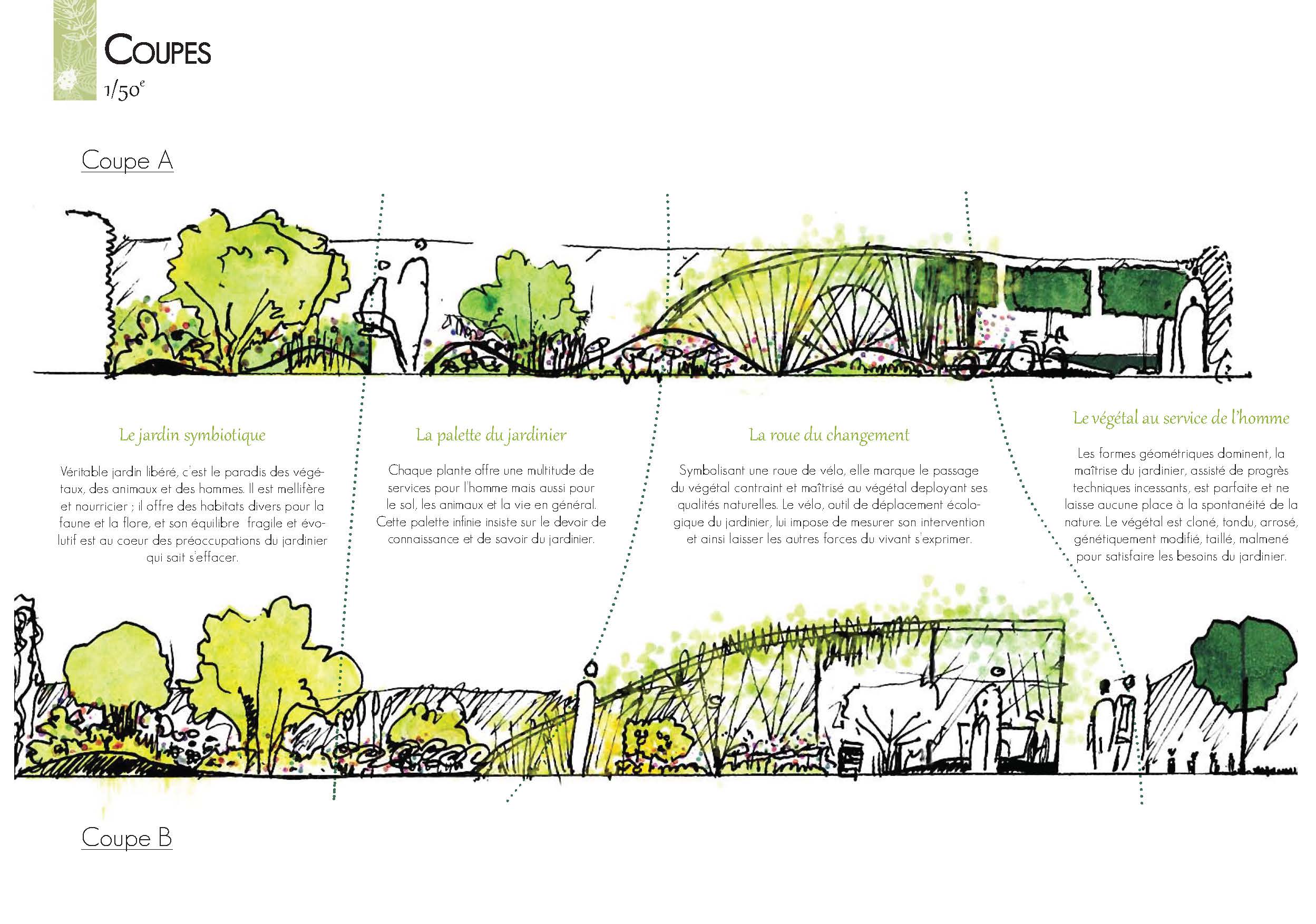 Le paradis imaginé par la communauté des jardiniers à vélo se dessine grâce à des pratiques innovantes, où chaque plante est respectée. La palette du jardinier est large, colorée et diverse : plantes spontanées, comestibles, mellifères ; utiles pour l’homme mais aussi pour le sol, la faune, et l’écosystème dans son ensemble. Les cycles de la nature sont favorisés et les matériaux recyclés. Les sillons de la bicyclette, à l’image des traces que laissent le jardinier, s’effacent peu à peu