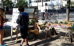 Pour ce dernier matériau nous nous fournissons au prêt de l’association d’insertion Parisenne appelée « carton plein » qui travaille notamment sur la revalorisation du carton et, bien sure, à vélo !