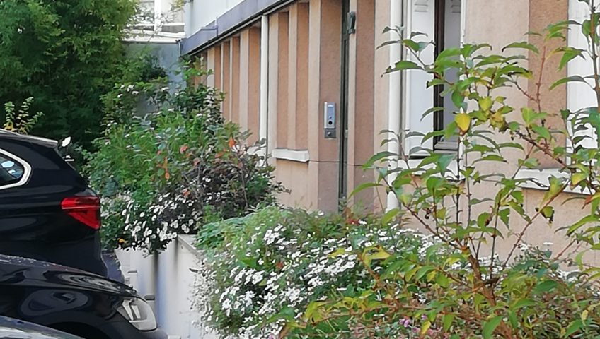 Végétalisation des pourtours d’un parking avec des végétaux de toutes tailles, aux floraisons toute l’année. Ilot de fraicheur et de couleurs bien apprécié par les habitant-es.
