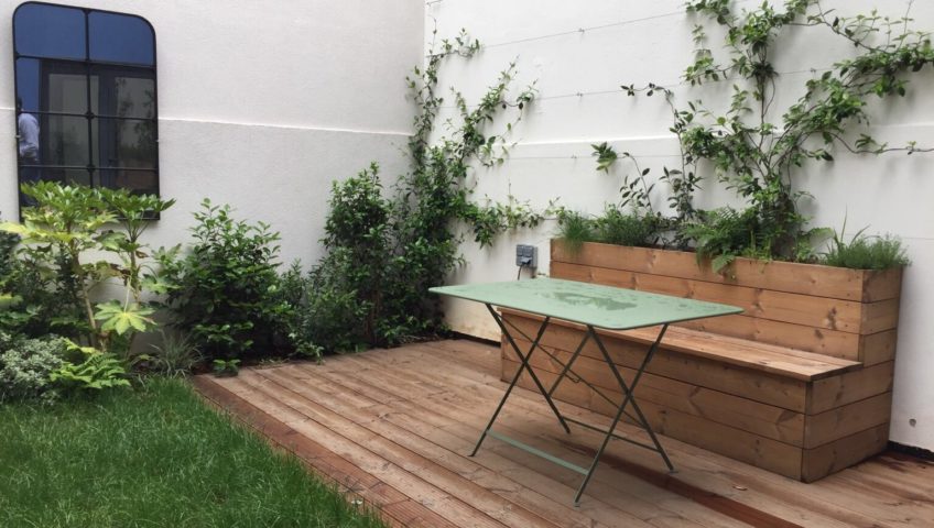 Nous avons réalisé les aménagements de ce jardin conçu par les paysagistes Ivy paysagistes