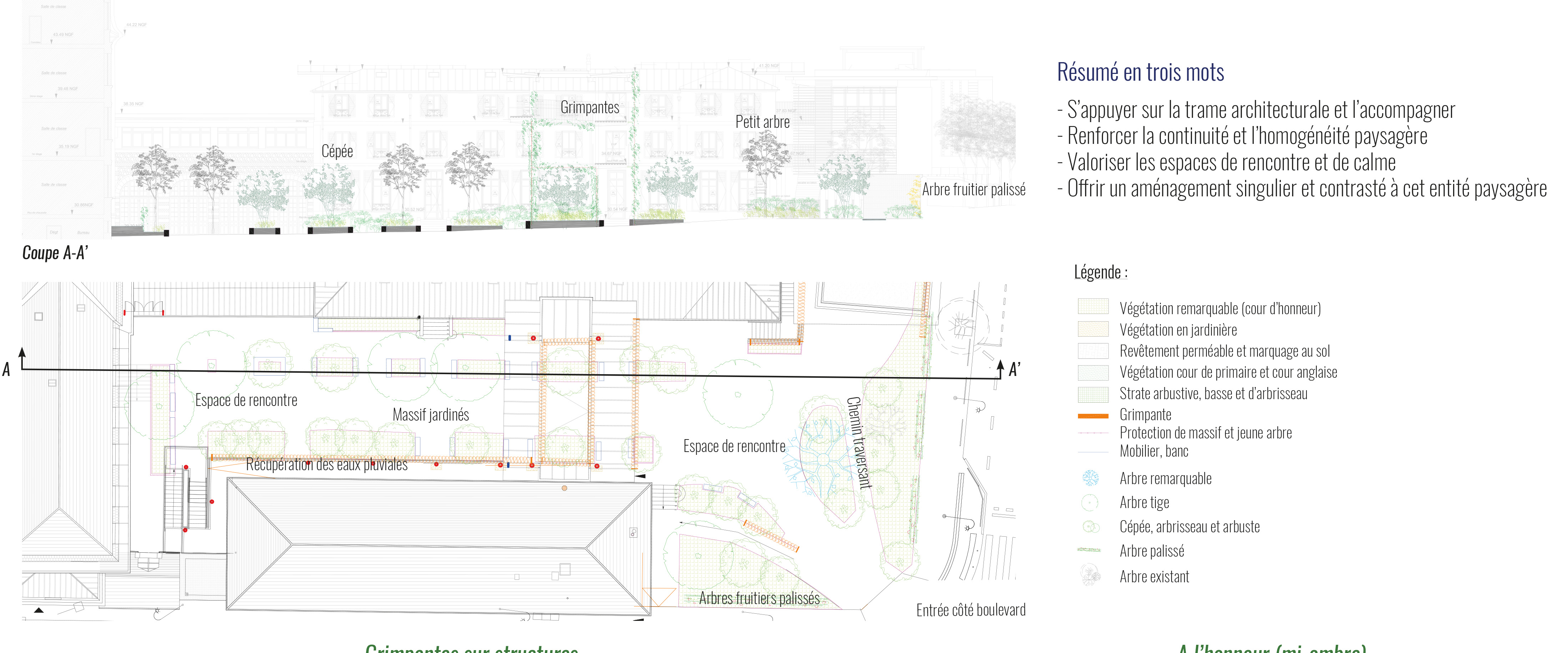 Dans la continuité des aménagements pour l'école Jeanne d'arc nous avons réalisé un massif paysager sur élevé...